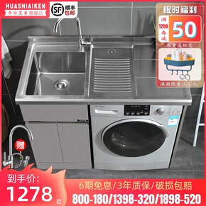 一体不锈钢洗衣柜阳台滚筒洗衣机伴侣组合搓板切角石英...