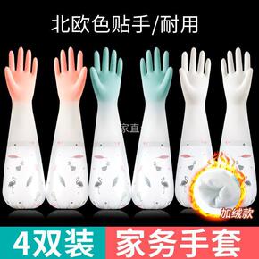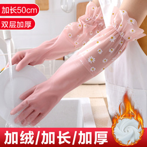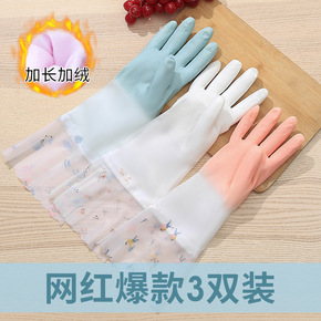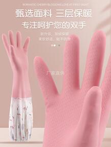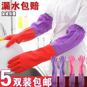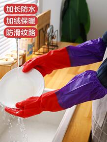 一体绒家用保暖手套加长加厚加绒胶皮洗衣服洗碗洗衣清...