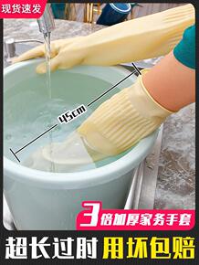 家务洗碗手套女防水薄款清洁厨房耐用洗衣服刷碗夏季长...