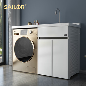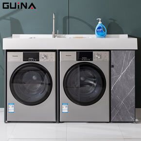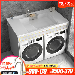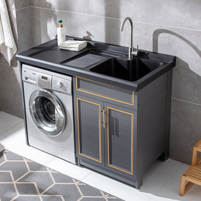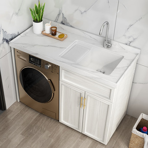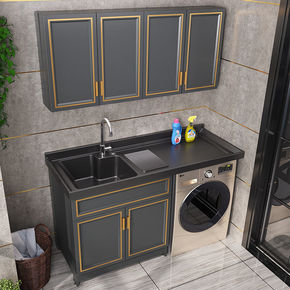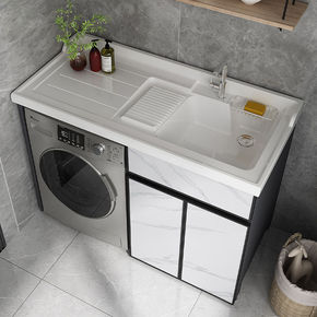 岩石洗衣机柜阳台组合太空铝洗衣池轻奢洗手盆带搓衣板...