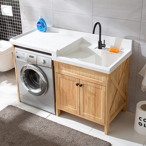 阳台实木洗衣柜组合北欧洗衣机柜子伴侣带搓衣板高低一...