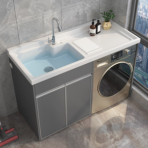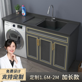 太空铝洗衣机柜阳台组合滚筒洗衣池台盆带搓板一体洗衣...