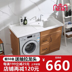 阳台太空铝双洗衣机柜人造石盆洗衣池带搓板浴室柜洗手...