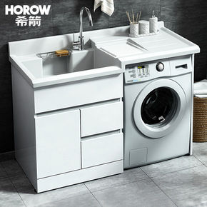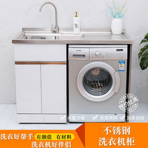 希箭不锈钢洗衣机柜子阳台洗衣柜组合带搓板台盆池一体...