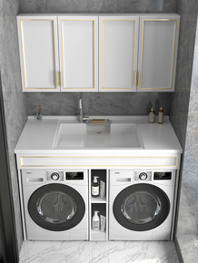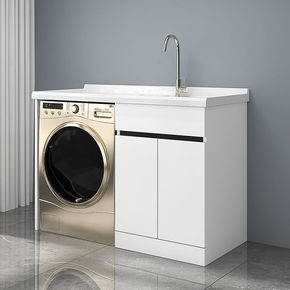 轻奢陶瓷盆简约洗衣柜组合阳台太空铝一体柜洗衣机柜伴...