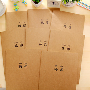 品牌:百合 型号:牛皮纸16K 封面材质:牛皮纸 封面颜色:政治、物理、生物、历史、作文本、...