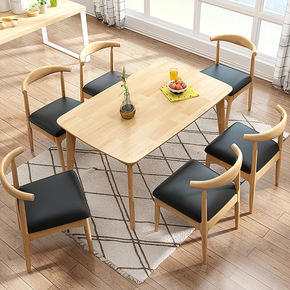 北欧风实木餐桌椅组合家用小户型吃饭桌餐厅简约现代长...