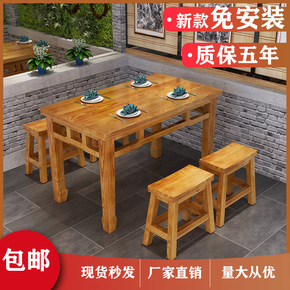 快餐桌椅实木饭店小吃店面馆餐馆桌椅碳化火锅桌烧烤桌...