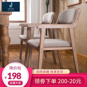 现代简约餐椅北欧实木椅子餐厅扶手休闲靠背椅家用电脑...