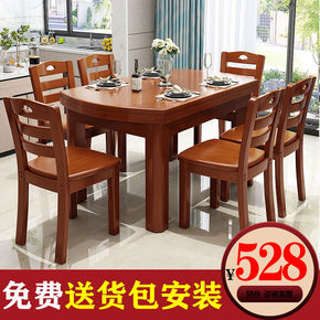 餐桌饭桌吃饭桌子实木餐桌椅组合伸缩折叠圆桌方桌子折...