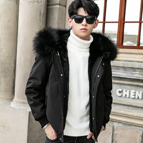 2021冬季派克服男士短款狼毛内胆狐狸毛大毛领皮毛...