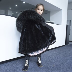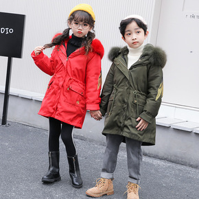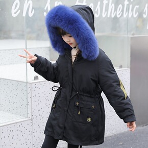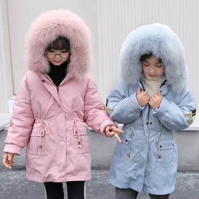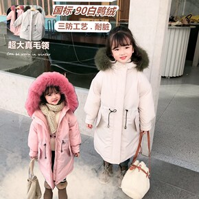 小大牌童装2020女童羽绒服韩版派克中长款真毛领加...