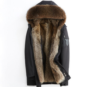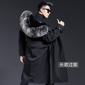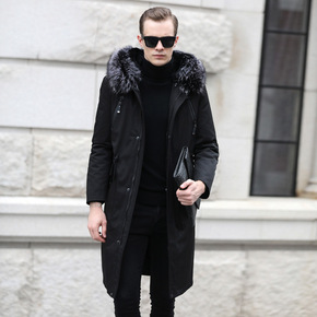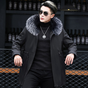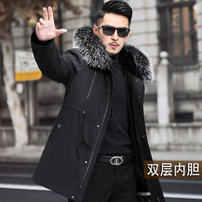 派克服男长款过膝水貂内胆海宁皮草大衣修身皮毛一体外...