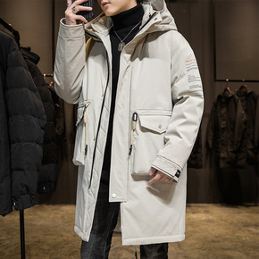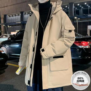 羽绒服男中长款2021冬季新款派克服保暖80白鸭绒...