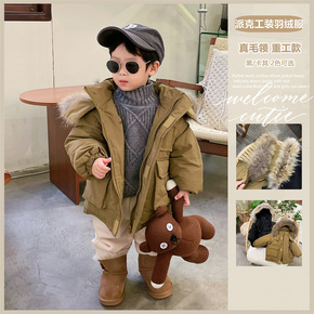 儿童羽绒服2021冬款新款韩版男童工装派克服女童宝...