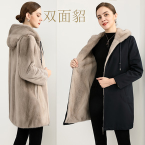 派克服女2021年冬新款尼克服水貂内胆双面穿外套貂...