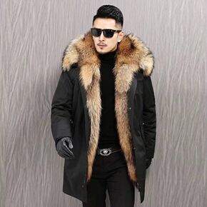 海宁冬季男款派克服狐狸貉子毛可拆卸内胆中长款加厚宽...