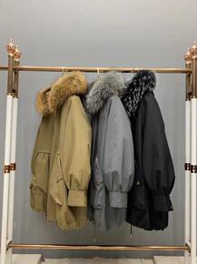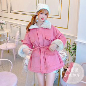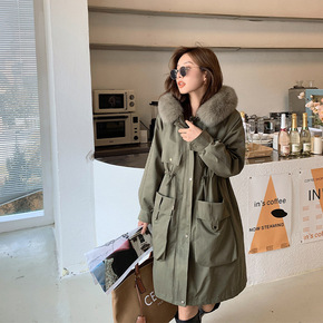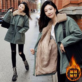 派克服加毛加厚女中长款2021年冬装新款工装收腰大...