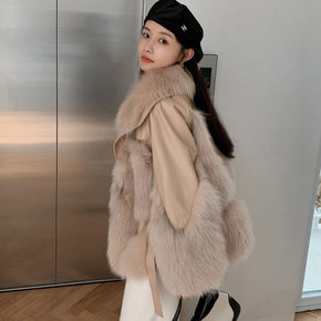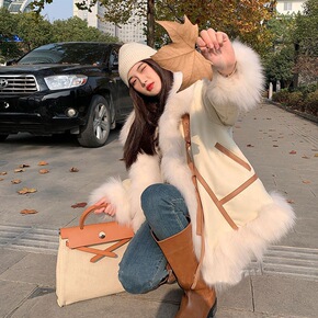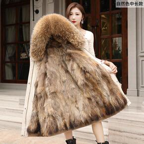 仿狐狸毛皮草外套女中长款2021秋冬季新款加棉加厚...