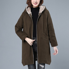 派克服女2021秋冬新款加绒中长款外套工装小个子大...