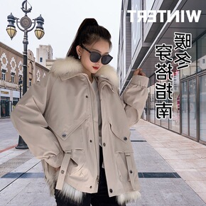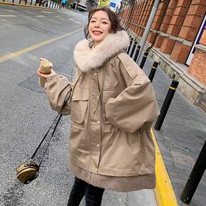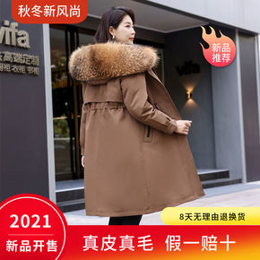 加厚派克服羽绒棉服女真毛冬季2021年新款中长款棉...