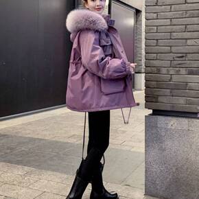 2021年新款韩版毛领棉袄中长款派克服棉服冬季羽绒...