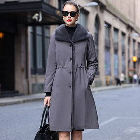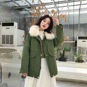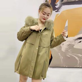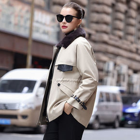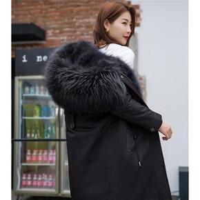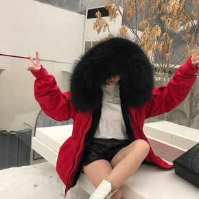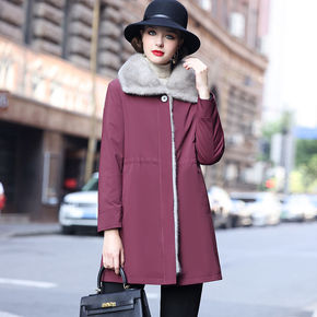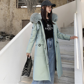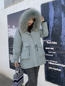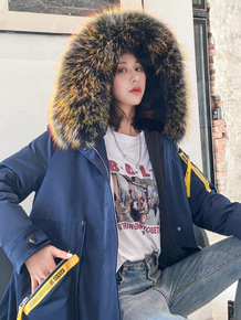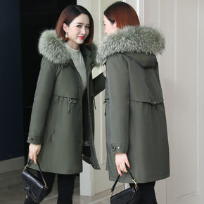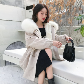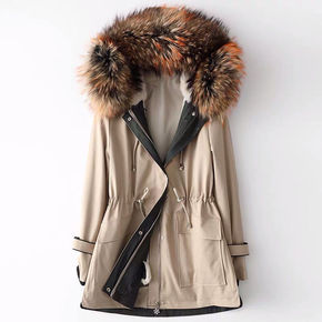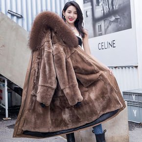 派克服女海宁连帽貉子领狐狸门襟獭兔内胆可拆卸中长款...