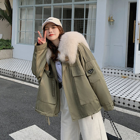 派克服2020新款女冬皮草外套短款獭兔内胆可拆卸狐...