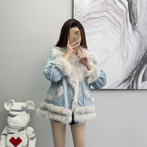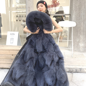 派克服2021冬新款皮草外套女中长款狐狸毛内胆可拆...