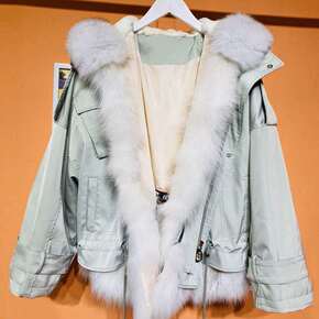 派克服女2021新款兔毛内胆狐狸毛领可拆卸短款海宁...