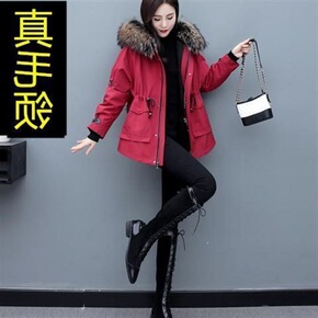 派克服女2021新款冬季貉子毛领兔毛内胆短款连帽皮...