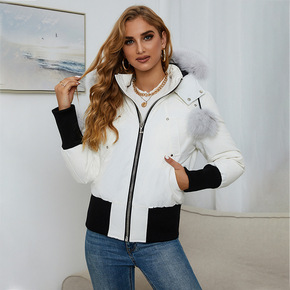 2021冬季女装新品 斜毛领短款派克服女韩版宽松工...