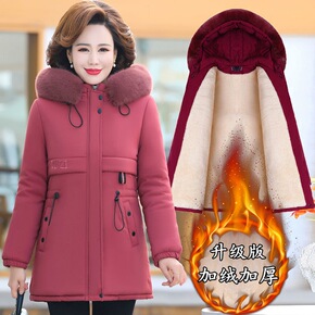 大码女装冬季新款加厚派克服棉衣女宽松显瘦中长款加绒...