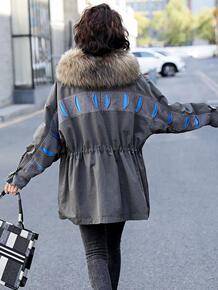 新款外贸女棉衣双面穿可拆毛领可拆帽子夹棉派克服女6...