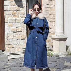 2021年新款冬季收腰外套中长款棉衣加绒大毛领牛仔...