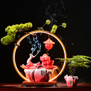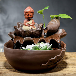 陶瓷流水加湿器创意倒流香炉室内家居三圣佛人物摆件陶...