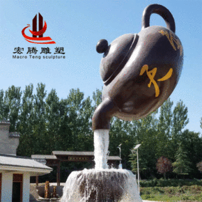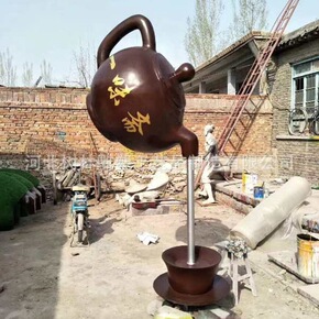定制玻璃钢天壶雕塑紫砂悬空流水雕塑仿真茶壶茶文化茶...