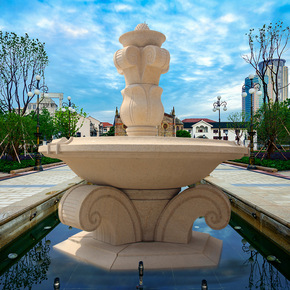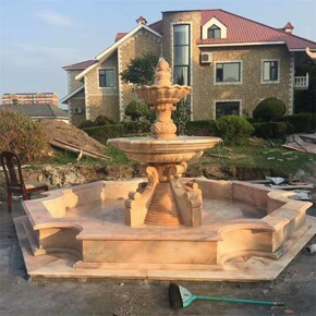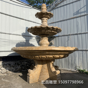 大型石雕喷泉 黄锈石流水花钵 大理石花岗岩石材石盆...