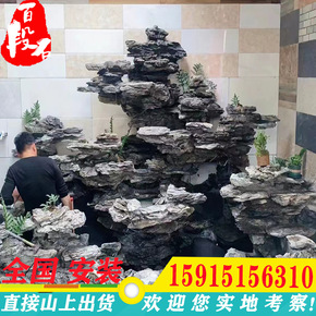英德石假山叠峰石流水瀑布假山安装锦鲤鱼池制作景观石...