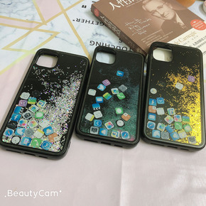 适用苹果xsmax手机壳潮女卡通化妆品漂浮流沙粉6...
