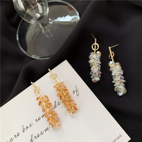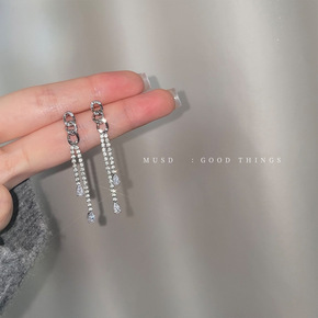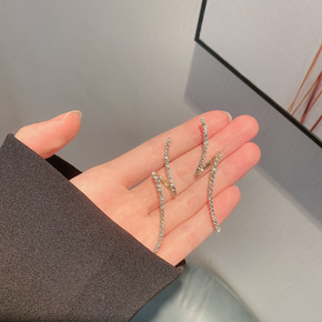 日韩新款925银针个性名媛满钻字母耳钉长款流苏欧美...