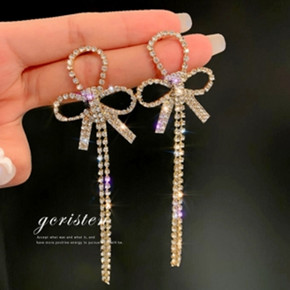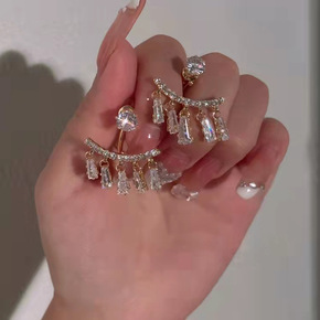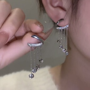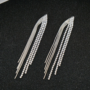 欧美跨境饰品 新款多层长绒带镶锆石流苏耳钉法式高...