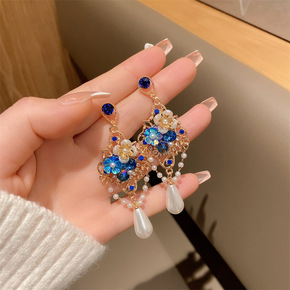 S925银针复古巴洛克珍珠流苏耳环韩国气质简约甜美...