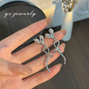 S925银针2021年新款潮蝴蝶结耳环高级轻奢网红...