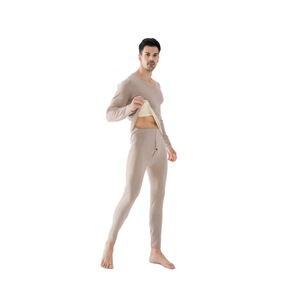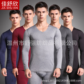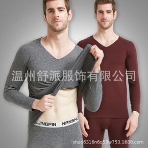 现货批发秋冬款恒温牛奶丝保暖内衣套装 男士贴身V领...