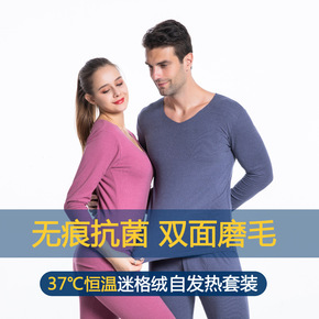 男女情侣款秋衣秋裤套装37度发热AB面打底衫无痕德...