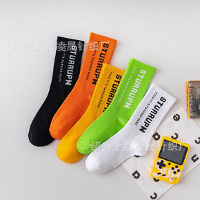网红情侣潮中筒ins潮街头嘻哈长筒袜韩国日系纯棉春...