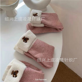 不怕脚冰冰~奶油草莓粉粉小熊加厚毛圈袜女冬季少女保...