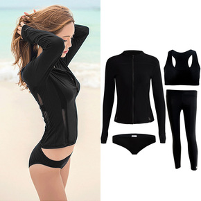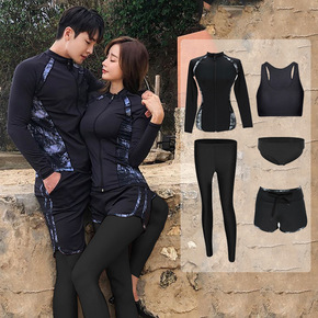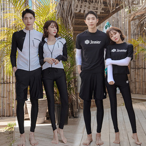 韩国潜水服拉链分体长袖长裤游泳衣防晒速干情侣男女水...