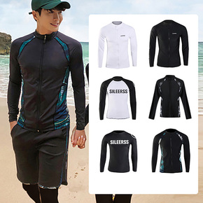 韩国潜水服男分体防晒水母衣长袖拉链上衣速干冲浪浮潜...